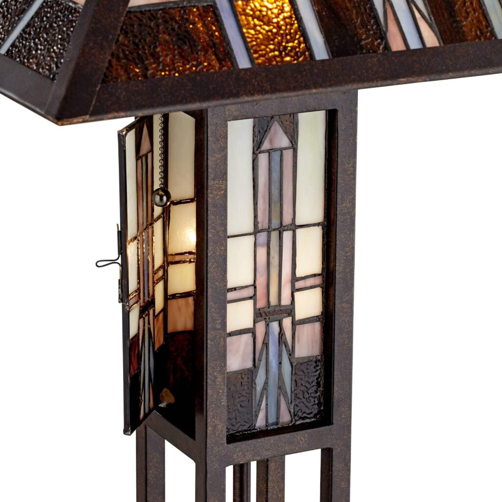Robert Louis Tiffany Mission Southwest Tiffany Style Standing Floor Lamp with Night Light Art Deco 60.5″ Tall Oiled Bronze Copper Stained Glass Shade Decor for Living Room Reading House Bedroom